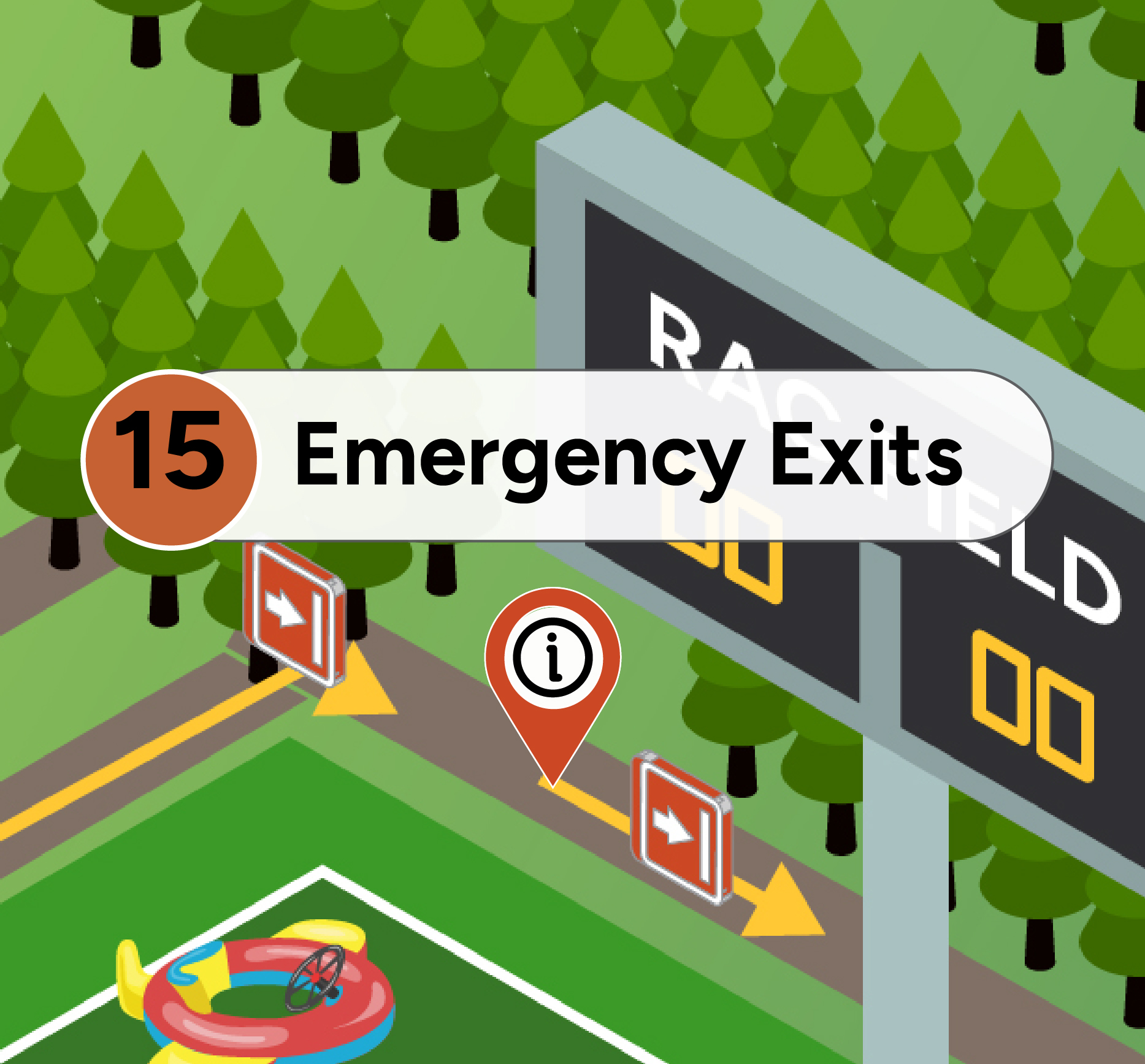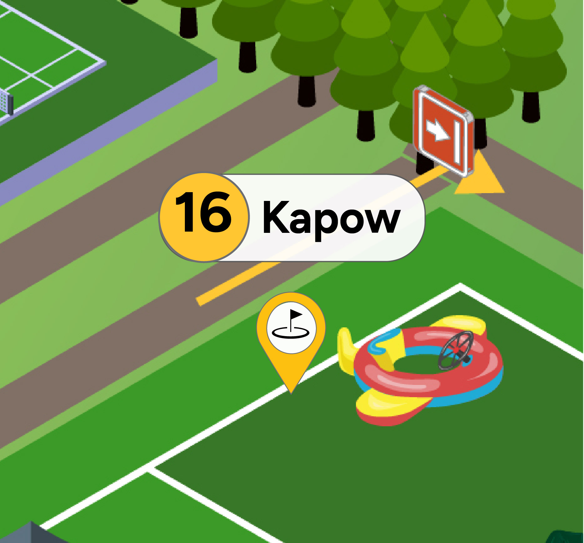 Race through the twisting turns and obstacles of Kapow, while avoiding the rotating boom arms! Be the first to exit and claim your victory!