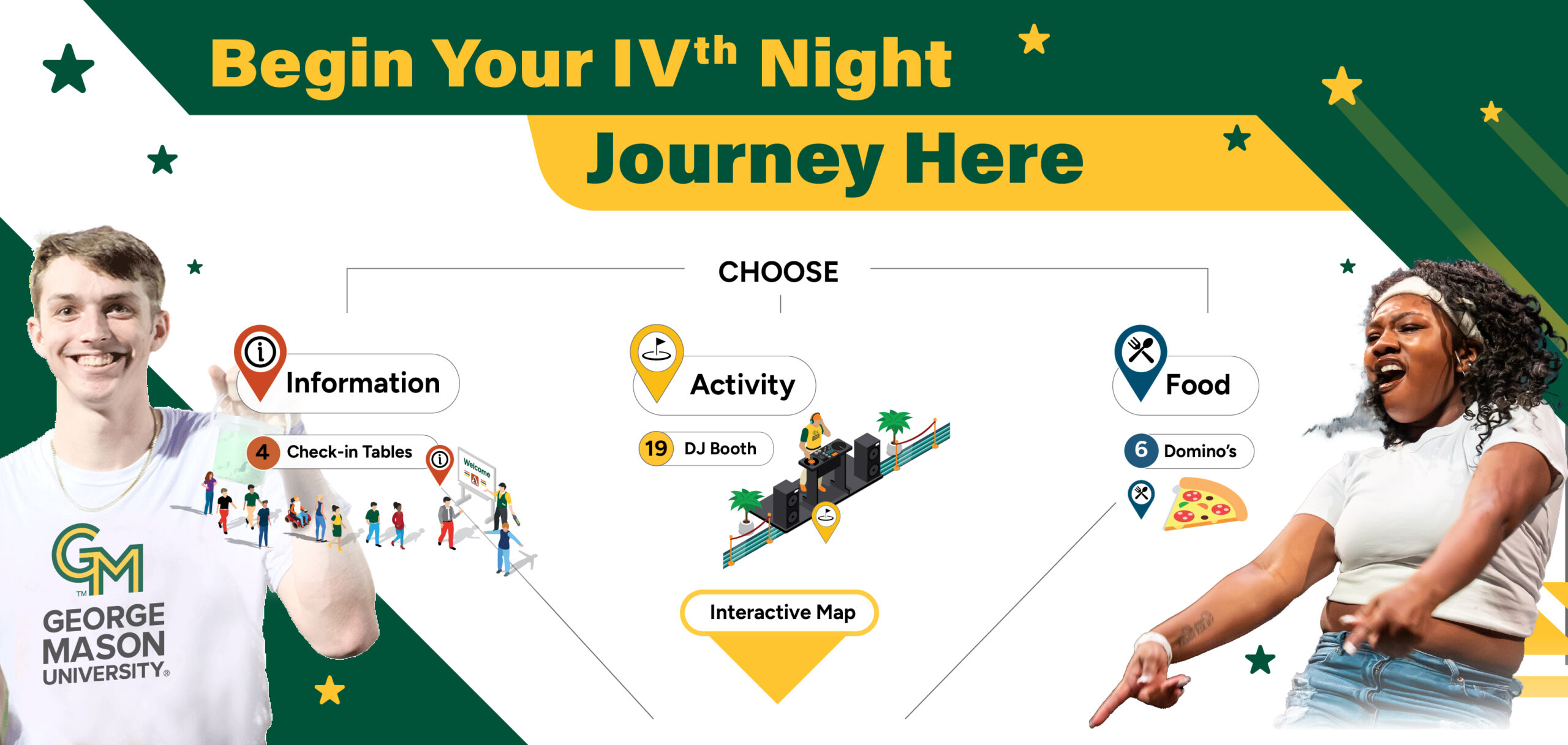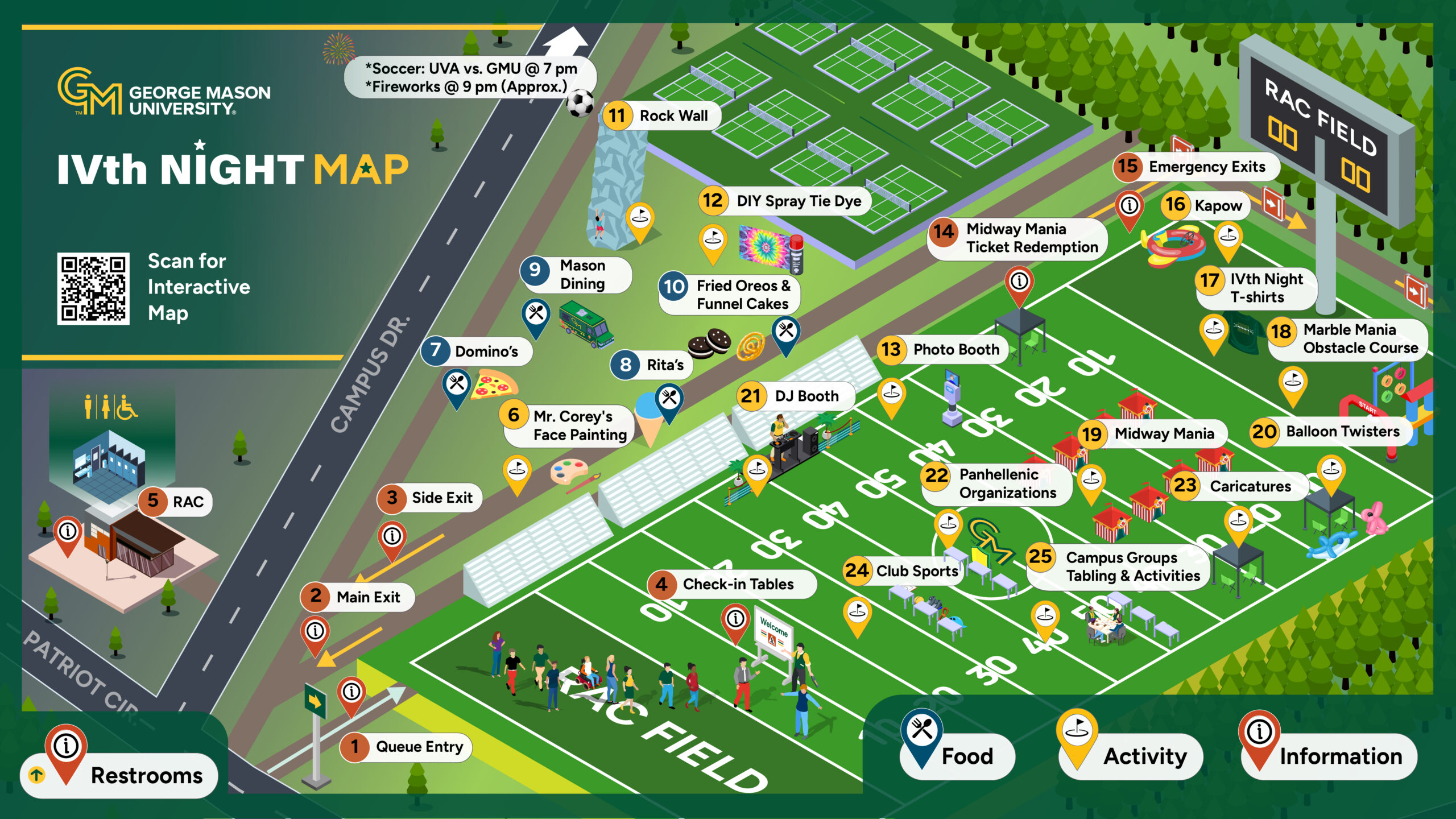 IVth night is an annual tradition named in honor of our University’s namesake, George Mason the Fourth. Come hang out with us for our fall carnival cohosted with Mason Recreation and Mason Athletics. Join your fellow students at The RAC Field for free food, carnival games with AMAZING prizes, DIY activities, inflatables, and a rock wall. But wait, there’s more. Have your picture drawn, get an airbrushed tattoo, don a crown of balloons or cuddle a balloon animal, vibe with the DJ, and make sure you arrive early to get your Mason Fight Song t-shirt! Then, head over to the men’s soccer game versus UVA.